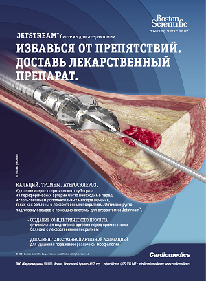 Продукция для периферических интервенций включает такие базовые продукты, как баллонный катетер Coyote, специально разработанный для артерий голени и стопы, баллонный катетер Mustang для подвздошных и бедренных артерий, периферические проводники V-14 ControlWire, V-18 ControlWire, Victory. В линейке инструментов для периферической ангиопластики имеются баллонный катетер Ranger с лекарственным покрытием паклитаксель на платформе .018” и поддерживающий катетер Rubicon. Семейство периферических нитиноловых стентов Boston Scientific обеспечивает клиническому специалисту возможность выбора и оптимальный результат. Так, высокотехнологичный периферический стент Innova, предназначен для имплантации в ПБА, стент Epic оптимален для имплантации в подвздошные артерии. Периферический стент Eluvia, покрытый лекарственным препаратом паклитаксель, продемонстрировал превосходные клинические результаты на протяжении 3 лет наблюдения в рандомизированном клиническом испытании (РКИ). Новая для российского рынка система для восстановления кровотока Jetstream уникальна своей универсальностью и показана к применению при разных, с точки зрения морфологии, поражениях от мягких тромботических масс до кальцинированных поражений. Благодаря высокотехнологичному принципу устройства возможно использование одного катетера на участках протяженного поражения, затрагивающего сосуды разных диаметров бедренно-подколенного сегмента и артерий голени. Многофункциональный механизм действия данной системы для атерэктомии обеспечивает высокую безопасность и эффективность вмешательства при ее использовании. В настоящее время доступна к заказу система для тромбэктомии AngioJet Ultra 5000A, не имеющая аналогов при лечении тромбозов глубоких вен и артериальных тромбозов.